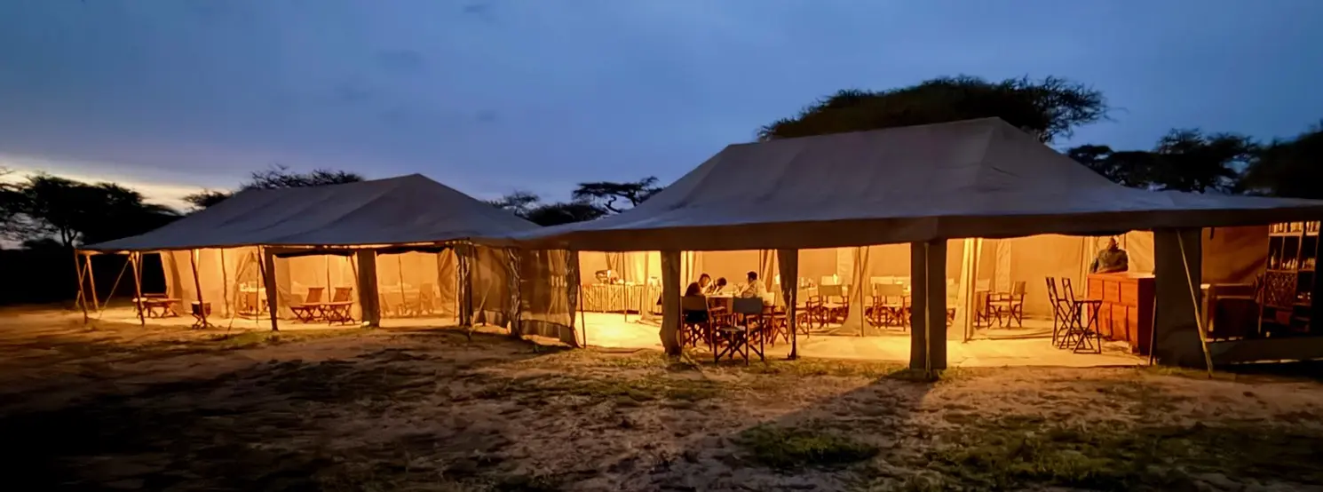 This is a semi-permanent campsite, which combines the comfort of a stable structure and the practicality of mobile camping. In fact, the site can be moved seasonally according to the number of animals present, to the rains, and other natural surrounding elements. Situated in the south of Serengeti, with beautiful views to the African Savannah, the location is the perfect spot to enjoy the migration from December to April. The camp enables the guest to experience an authentic African safari and at the same time offering the perfect balance between comfort, intimacy and splendid isolation. The camp is tucked away in the bush, shaded by acacia trees, and is furnished in safari style with simple ensuite bathrooms, it's ecofriendly as it runs on solar lighting, and consists of ten double spacious fully furnished tents and one family tent. The camp completes its facilities with a mess tent where meals are served and a lounge tent. Here is the perfect base for you to indulge your passion for animal viewing and wildlife photography without missing out on your creature comforts. Apart from the massive presence of animals, the area has unforgettable and uncontaminated natural landscapes.