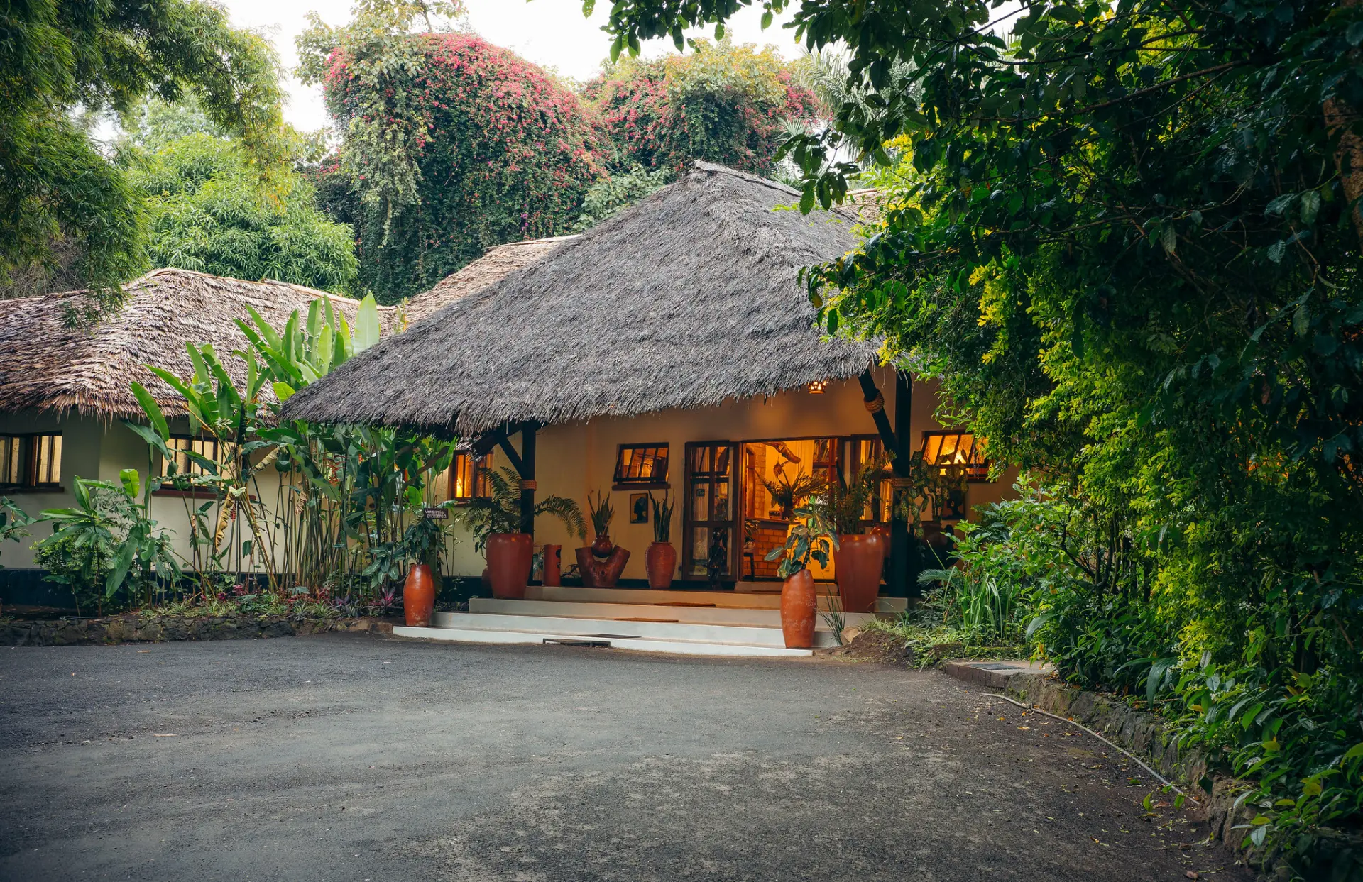 Their spacious thatched brick cottages are set in a lovely tropical garden, with private verandas to guarantee every visitor all the privacy needed. Relax and enjoy the beautiful vista of Mount Meru from the comfortable veranda, go for a stroll around the Moivaro property walking trail, or laze at the pool nestling in the midst of tropical trees and coffee plants.