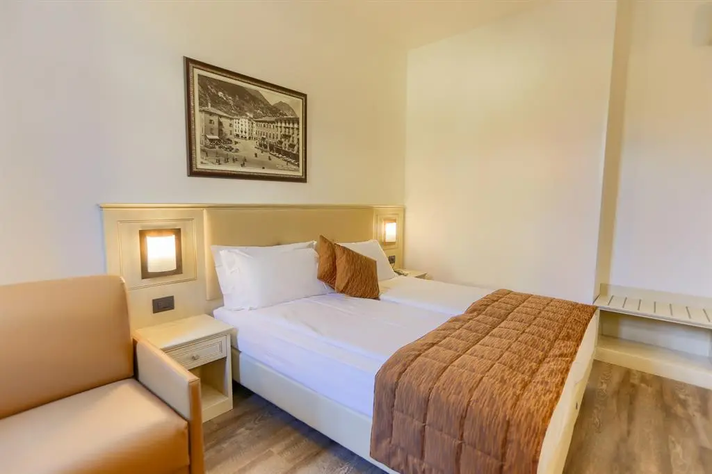 Hotel Portici in Riva del Garda feels like stepping into the most elegant corner of the town’s main square, where history, lake life, and Italian café culture all blend into one beautiful scene. Set under the old porticoes and just moments from the water, it has that effortless charm where mornings spill out onto terraces with espresso and fresh pastries, and the whole day unfolds to the rhythm of footsteps on cobblestones and boats gliding across the harbor. Inside, there’s a refined yet relaxed atmosphere—modern comfort wrapped in a historic building that still feels deeply connected to the soul of Riva. It’s the kind of place where you don’t just stay in the town—you feel woven into it, with the lake always just a breath away.