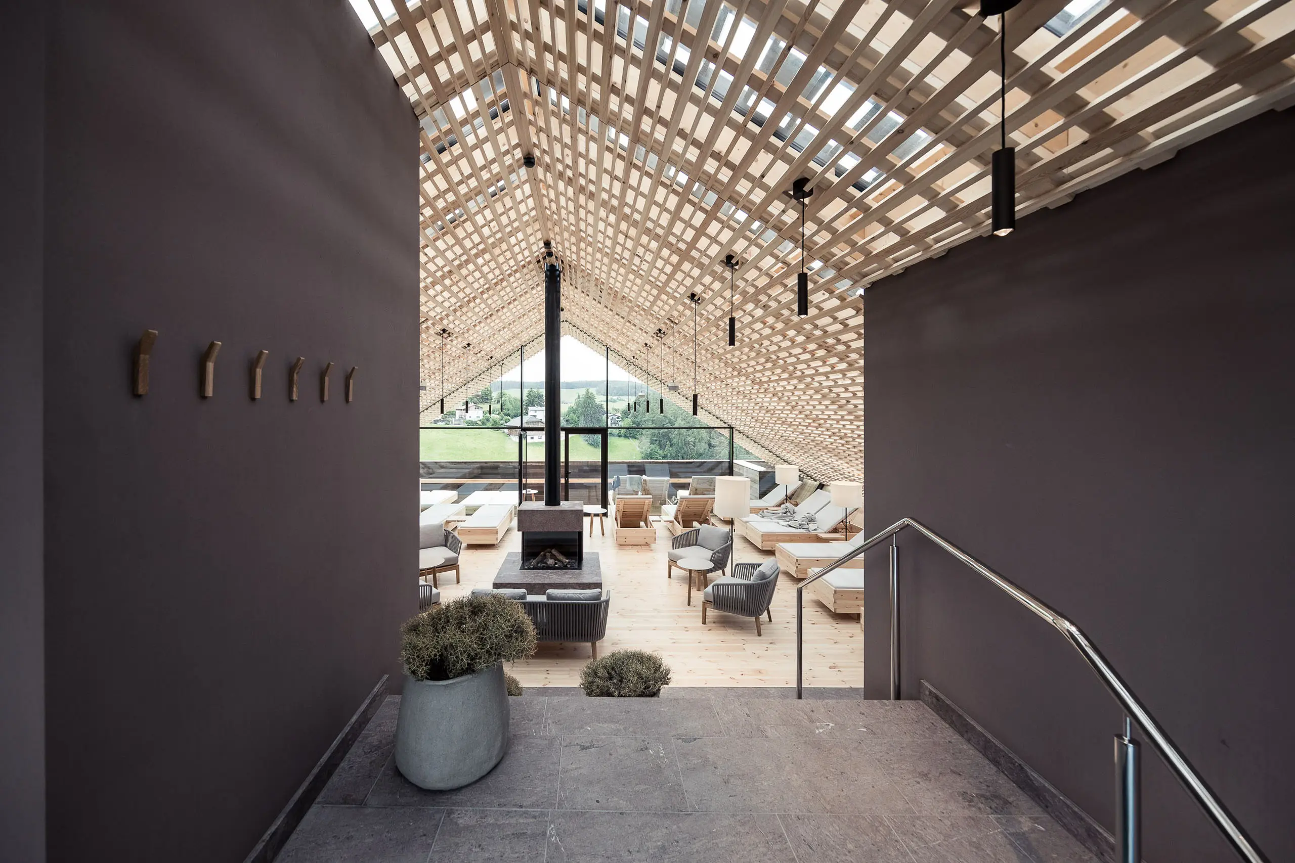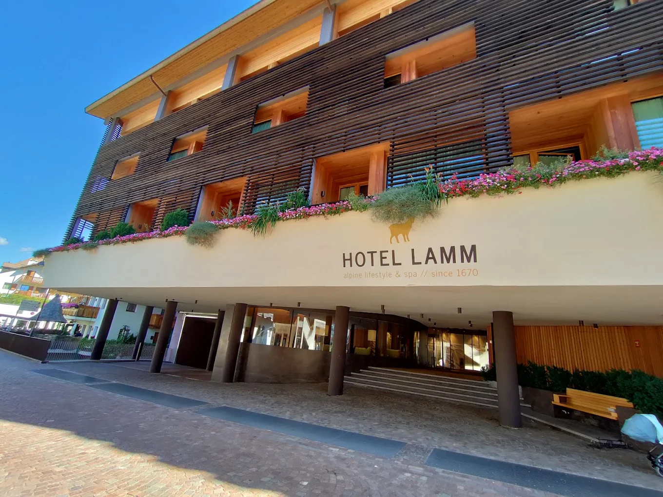 Hotel Lamm in Castelrotto feels like the kind of place where the Dolomites don’t just sit in the background—they quietly take over your entire sense of time. Set right in the heart of the village square, this beautifully restored historic building blends old-world Alpine charm with a soft, modern elegance that feels warm rather than flashy. Mornings start with crisp mountain air drifting through the windows, and evenings often end in the glow of the rooftop spa as the bell tower and surrounding peaks turn pink and gold. There’s a wonderful sense of balance here—lively village life just outside your door, yet total calm once you step inside—making it the perfect base for days spent hiking alpine meadows, wandering stone streets, and returning to a glass of wine while the mountains slowly fade into twilight.